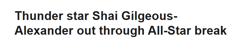 球队方面,雷霆队在全明星周末前的最后五场比赛中,有四场的对手都是西部季后赛级别球队,赛程先后对阵圣安东尼奥马刺、休斯顿火箭、洛杉矶湖人和菲尼克斯太阳,收官战则将迎战密尔沃基雄鹿。本赛季至今,雷霆队在缺少亚历山大的情况下取得了2胜0负的战绩,击败过孟菲斯灰熊与犹他爵士,但接下来的这段赛程,将进一步检验这支缺少MVP后卫的球队的阵容深度。